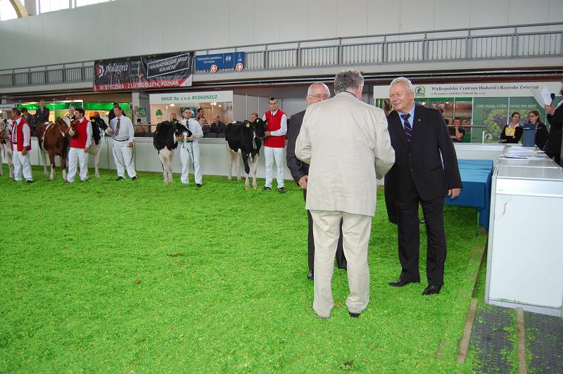 W miniony weekend na terenie MTP odbyła się XXVI KWZH Poznań 2013. Przypomnijmy, że obecna wystawa odbywa się w cyklu dwuletnim przez co tym bardziej wzrasta jej prestiż i ranga. Tegorocznej wystawie towarzyszył salon maszyn i urządzeń wykorzystywanych w hodowli i chowie zwierząt. Oglądaliśmy także najlepsze okazy zwierząt najpopularniejszych ras hodowlanych i gospodarskich. Na stoiskach można było uzyskać fachową wiedzę z zakresu hodowli i pielęgnacji zwierząt, a także zapoznać się z ofertą wyposażenia, produktów i usług dostępnych na rynku. Po raz pierwszy w tym roku odbyła się impreza pod hasłem "Arena Mięsa" Oczywiście KWZH nie mogła by się odbyć bez udziału hodowców bydła, trzody chlewnej, pszczelarzy. W tym roku w ekspozycji bydła mlecznego wzięło udział 45 wystawców, prezentujących 179 zwierząt w tym 88 krów i 91 jałówek. Rejonu działania naszej firmy był reprezentowany, przez OHZ Kamieniec Ząbkowicki, OHZ Dębołęka, SK Michałów oraz hodowców Panią Elżbietę Świeżak miejscowość Poszewka, Panów Jerzego i Bogusława Tomaszewskich z Przasnysza, Panów Jana i Łukasza Majkowskich miejscowość Jarzyły, Pana Pawła Gołębiewskiego z Mystkowic, Pana Radosława Kubiaka z Emilianowa. Zespołowi sędziowskiemu przewodniczył John Cousar z Wielkiej Brytanii a jego asystentami byli: Roman Januszewski oraz Mirosław Anaczkowski - selekcjonerzy PFHBiPM. Spośród wszystkich ocenionych zwierząt 15 sztuk otrzymało tytuł championa oraz 15 sztuk tytuł vice championa. Sędziowie przyznali również trzy honorowe tytuły superczempiona XXVI Krajowej Wystawy Zwierząt Hodowlanych. Spośród naszych hodowców biorących udział w wystawie championaty zdobyli: OHZ Kamieniec Ząbkowicki champion w kategorii jałówki w wieku16-18 mięsięcy Nr.kat. 125 PL005232327963, tytuł vice championa dla krowy Nr. kat. 239 PL005298729541 w kategorii krowy w I laktacji z OHZ Dębołęka. W rasie jersey tytuł championa przypadł krowie o Nr. kat. 407, PL005081124829 z SK Michałów oraz vice champion dla krowy także z Michałowa o Nr. kat. 398 PL005249009258. W konkursie trzody chlewnej w poszczególnych kategoriach udział wzięło 50 knurów i 49 loszek, które były wystawiane w sumie przez 34 hodowców. Komisja sędziowska dokonała przeglądu 99 sztuk zarodowej trzody chlewnej. Z tej stawki wyłoniono 9 świń o najlepszym pokroju ciała i wynikach hodowlanych. W skład komisji sędziowskiej która oceniała zwierzęta wchodzili prof. dr hab. Marian Różycki z Instytutu Zootechniki w Krakowie, Dariusz Kowalewski z Mazowieckiego Centrum Hodowli i Rozrodu Zwierząt w Łowiczu oraz Ryszard Hołownia z Polskiego Związku Hodowców i Producentów Trzody Chlewnej. Championy wśród knurów: Championy wśród loszek: Wystawie towarzyszyło wiele wydarzeń jednym z nich ale jakże podniosłym i miłym było wręczenie przez Ministra Rolnictwa i Rozwoju Wsi Stanisława Kalembę Odznaczeń Zasłużony dla Rolnictwa pracownikom naszej firmy. Odznaczenia zdobyli Pani Anna Grabowska pracownik Zakładu Zameczek, Dyrektor Zakładu Sierpc Łukasz Bruze, Pan Krzysztof Gałusa pracownik Zakładu Łowicz, Pan Witold Straszyński pracownik Zakładu Łowicz, Pan Andrzej Wituła inseminator terenu Wartkowice- Zakład Gostków fotogaleria: