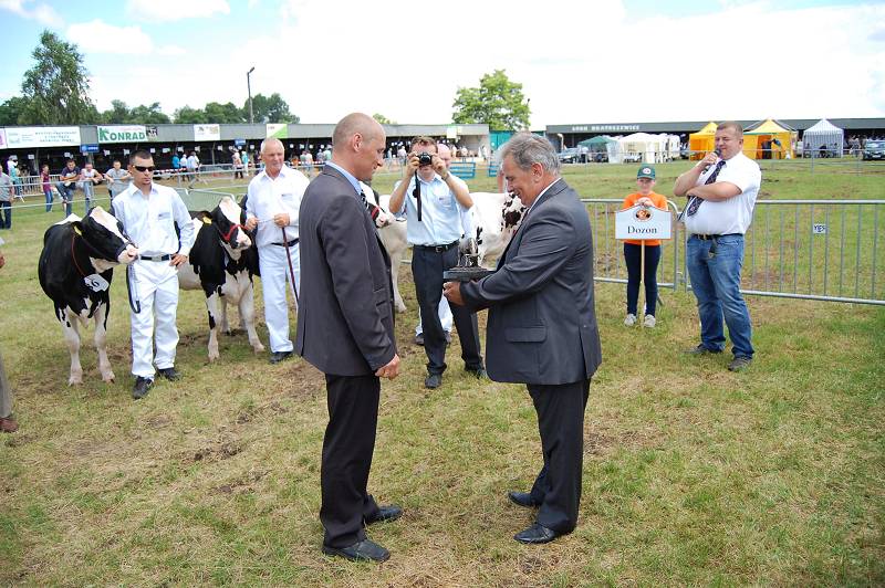 W miniony weekend w dn. 22-23 czerwca na terenach wystawowych Łódzkiego Ośrodka Doradztwa Rolniczego z siedzibą w Bratoszewicach odbyła się XV Wojewódzka Wystawa Zwierząt Hodowlanych połączona z Targami Rolnymi "W Sercu Polski". Patronat nad targami i wystawą objęli Minister Rolnictwa i Rozwoju Wsi, Wojewoda Łódzki oraz Marszałek Województwa Łódzkiego. Pogoda okazała się być łaskawą dla zwiedzających i wystawców choć deszcz także dał o sobie znać jednak perfekcyjne przygotowanie organizatorów sprawiło że wystawa odbyła się bez żadnych przeszkód. W targach udział wzięło około 120 wystawców prezentujących akcesoria i sprzęt niezbędny do pracy w rolnictwie. Targom towarzyszył jarmark z sadzonkami roślin, wyrobami rękodzielniczymi i artykułami spożywczymi. Zwiedzającym czas umilały występy kapel ludowych. Oczywiście że w Bratoszewicach nie mogło zabraknąć także Mazowieckiego Centrum Hodowli i Rozrodu Zwierząt Sp. z o.o. z siedzibą w Łowiczu. Naszą obecność podkreślały banery reklamowe , stroje hodowców prezentujących bydło oraz interesujące, pełne kolorytu stoisko, które odwiedzali liczni goście. Targi to przecież świetne miejsce do rozmów i spotkań, wymiany doświadczeń i obserwacji zmian zachodzących w rolnictwie na przestrzeni ostatnich lat. Na XV Wojewódzką Wystawę Zwierząt Hodowlanych przybyło około 100 hodowców prezentujących bydło, trzodę chlewną, owce, kozy, drób, drobne zwierzęta futerkowe. W sumie zaprezentowano około 600 zwierząt w tym 84 krowy i cielęta. W Wystawie bydła i trzody chlewnej wzięło udział wielu hodowców którzy od wielu lat współpracują z Mazowieckim Centrum Hodowli i Rozrodu Zwierząt Sp. z o. o. a świetne efekty tej współpracy mogliśmy zobaczyć w Bratoszewicach. Bydło- zwycięzcy w poszczególnych kategoriach: Jałowice gr I gr II gr III gr IV gr V Vice champion PL005225336903 Cyranka 13 GR Wojciech Kaźmierczak Popów Głowieński ojciec Akuzyszyn PL005187111099 test MCHiRZ Łowicz PL005283310211 Anita 25 GR Tomasz Kocięba Kol. Łaznów ojciec Edon FR8501200843 test MCHiRZ Łowicz PL005288117983 Gitara 3 Agnieszka Grzelak Wola Kałkowa ojciec Micah US136846077 PL005313091745 Kropka GR Radosław Kubiak Emilianów ojciec Laramee US134170608 Champion PL005313091806 Windsor 1 GR Radosław Kubiak Emilianów ojciec Laramee US134170608 PL005285073466 Stella Rubi GR Janusz i Tomasz Rytych Bogusławice ojciec Rubis CH120012543059 PL005317339188 Prima 8 GR Niewiadów Włodzimierz Jabłoński ojciec Sly US62564884 PL005317339348 Jana 6 GR Niewiadów Włodzimierz Jabłoński ojciec Les US61376443 PL005313091714 Szczypawka 34 GR Radosław Kubiak Emilianów ojciec Laramee US134170608 PL005291048908 Alexis 1 GR Radosław Kubiak Emilianów ojciec Horty CZ038451061 PL005313091486 Drynionka 10 GR Radosław Kubiak Emilianów ojciec Shogun NL384379291 Champion i Super champion w kategorii jałowice PL005285874957 Maria 2 Krzysztof Cyganiak Emilianów ojciec Proof PL005241486194 test MCHiRZ Łowicz Krowy pierwiastki Vice champion PL005298730530 Tama 50 OHZ Dębołęka ojciec Gestor PL005194131165 test MCHiRZ Łowicz PL005298730721 Dumna 117 OHZ Dębołęka ojciec MR Burns CA100745543 PL005319241977 Hilta 9 GR Niewiadów Włodzimierz Jabłoński ojciec Studente NL382457689 Champion i Super champion PL005298729541 Bertha 5 OHZ Dębołęka ojciec Jeeves US134438230 Krowy w II laktacji Vice champion PL005211433739 Luka 23 OHZ Dębołęka ojciec Milkstar CA10608609 Champion PL005191758464 Ansa 9 GR Niewiadów Włodzimierz Jabłoński ojciec Ugeni FR5941775660 wyceniony MCHiRZ Łowicz Krowy w III laktacji i starsze Champion PL005194130700 Newada 56 OHZ Dębołęka ojciec Tunel PL005122890492 MCHiRZ Łowicz Poza typowym konkursem bydła, drugiego dnia wystawy odbył się pokaz stawki córek po wybitnym buhaju łowickiej spółki DOZON PL005036531443. W stawce prezentowane były także trojaczki po Dozonie. Przypomnijmy, że trzy cieliczki urodzone ponad rok temu pochodzą z GR Państwa Wioletty i Krzysztofa Cyganiaków z miejscowości Emilianów gmina Bielawy. Buhaj Dozon został zakupiony do stacji z Ośrodka Hodowli Zarodowej w Dębołęce. Warto dodać, że OHZ Dębołęka od wielu lat uczestniczy aktywnie w Programie Oceny i Selekcji Buhajów Mazowieckiego Centrum Hodowli i Rozrodu Zwierząt Sp. z o.o. z siedzibą w Łowiczu. Dozon- ta nazwa buhaja przewijała się w Bratoszewicach nie tylko podczas pokazu jego córek rozpłodnik jest także ojcem matki super championki wystawy Bertha 5 pochodzącej z OHZ Dębołęka. Cały pokaz stawki po Dozonie zwieńczyło uroczyte wręczenie statuetki dębołęckiemu ośrodkowi hodowli zarodowej. Statuetkę wręczył osobiście podobnie jak pozostałe wyróżnienia, puchary i nagrody Prezes Zarządu Spółki Krzysztof Gajek. Niedziela w Bratoszewicach miała jeszcze wiele miłych i radosnych akcentów nagrody i pamiątkowe puchary otrzymali z rąk Prezesa MCHiRZ Sp. z o.o. SK Walewice za wprowadzenie do rankingu obecnego lidera buhaja Pastel PL005189450752, oraz Pan Jacek Szadek z miejscowości Maszew za wprowadzenie do rankingu buhaja Burgund PL005209024321. Kolejnym punktem programu był Konkurs Młodego Hodowcy w którym to najmłodsi hodowcy prezentowali swoje cieliczki. Prezentacja oczywiście zakończyła się wręczniem nagród ufundowanych przez naszą firmę i PFHBiPM. W konkursie trzody chlewnej oceniono 41 zwierząt w tym 4 knury stadne, 22 młode knurki oraz 15 loszek. Nagrody otrzymały następujące zwierzęta: Knur Rasa WBP champion Nr 20199-1323/12 Ewa i Janusz Linka vice champion Nr 20199-1150/12 Ewa i Janusz Linka vice champion Nr 20208-0001/13 Jan Deka Loszka Rasa WBP champion Nr 20199-1367/12 Ewa i Janusz Linka vice champion Nr 20199-0004/13 Ewa i Janusz Linka vice champion Nr 20199-0032/13 Ewa i Janusz Linka Knur Rasa PBZ champion Nr 20306-0633/12 Jan Deka vice champion Nr 20244-2030/12 Ewa i Janusz Linka vice champion 