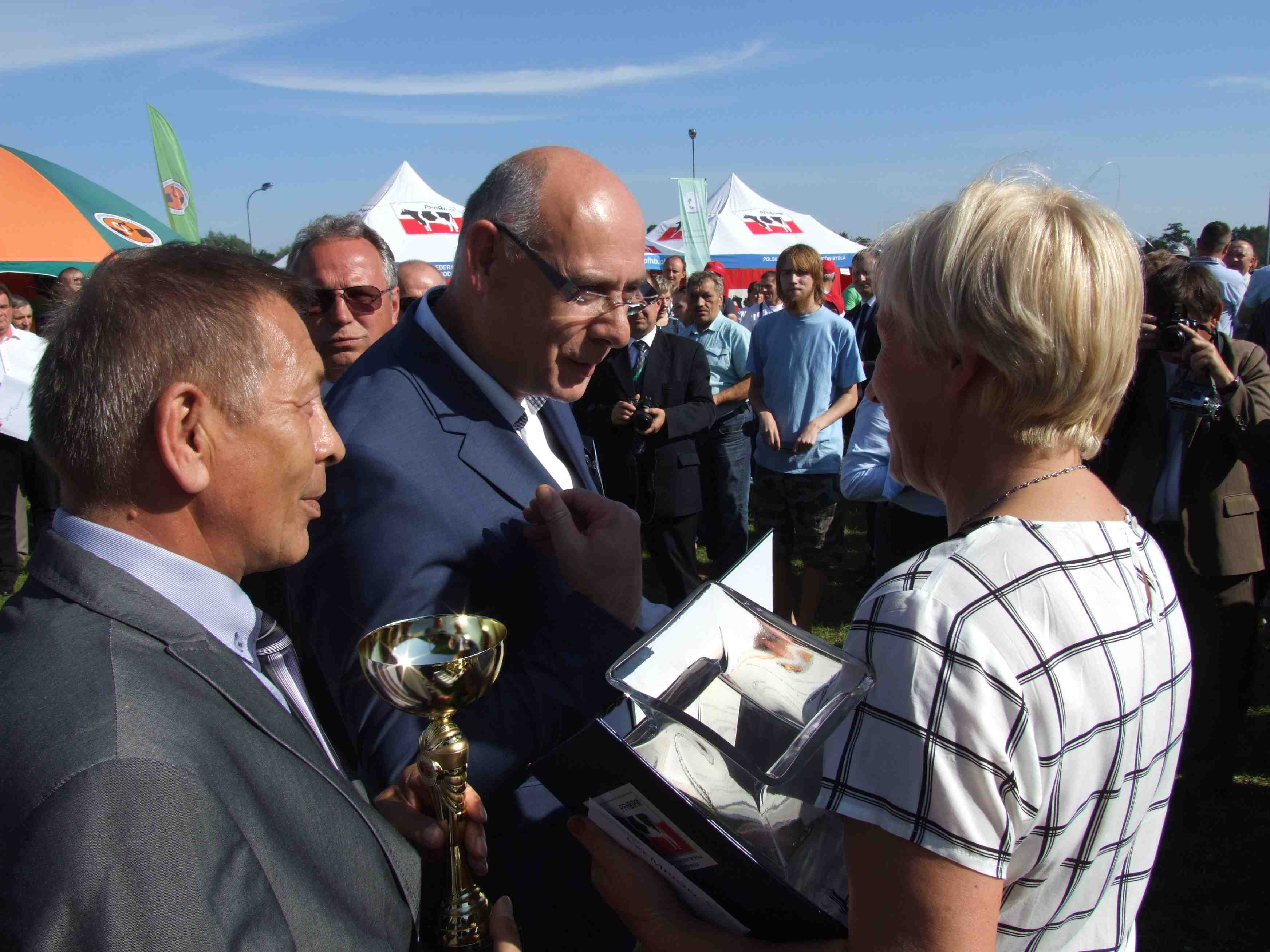 W dniach 6 i 7 września bieżącego roku w ramach XXI Międzynarodowych Dni z Doradztwem Rolniczym odbyła się X Regionalna Wystawa Zwierząt Hodowlanych współorganizowana przez Mazowieckie Centrum Hodowli i Rozrodu Zwierząt Sp. z o.o w Łowiczu, Polską Federację Hodowców Bydła i Producentów Mleka oraz Mazowieckiego Związku Hodowców Bydła i Producentów Mleka , w jej trakcie swoje zwierzęta zaprezentowało 45 wystawców z terenów Mazowsza i Podlasia prezentując łącznie 66 sztuk bydła mlecznego ras polskiej holsztyńsko fryzyjskiej czarno białej oraz czerwono białej. W poszczególnych kategoriach prezentowano: - jałowice nie cielne 13 sztuk - jałowice cielne 15 sztuk - krowy pierwiastki 12 sztuk - krowy w II laktacji 7 sztuk - krowy w III laktacji i dalszej 8 sztuk W kategorii jałowic nie cielnych tytuł championa wywalczyła podopieczna Elżbiety Świeżak z Poszewki, tytuły vice championów wywalczyły jałowice będące własnością Roberta Radzikowskiego z Modrzewia i Świerżyńskiej Anieli ze wsi Nienałty Szymany. W kategorii jałowic cielnych tytuł championa zdobyło zwierzę Kazimierza Witowskiego z Czarnowąża, vice championami zostały jałowice Dariusza Kołtuniaka z Wólki Soseńskiej oraz Piotra Września ze wsi Skwierczyn Dwór. W kategorii pierwiastek główną nagrodę zdobyła podopieczna Dariusza Nasiłowskiego ze wsi Skwierczyn Dwór, vice championami zostały pierwiastki panów Wojciecha Sójki z Kiełpińca oraz Tadeusza Stelęgowskiego z Kudelczyna. W kategorii krów II laktacji zwycięzcą okazała się krowa Adama Brzezińskiego z Przywózek vice championami zostały zwierzęta Anieli Swierżyńskiej z Nienałt Szyman oraz Marka Rzążewskiego z Modrzewia. Ostatnią ocenianą kategorią były krowy III laktacji i dalszej, gdzie najlepszym zwierzęciem została krowa Krzysztofa Ołtarzewskiego z Dybowa, zwierzę to jednocześnie otrzymało tytuł super championa wystawy, na kolejnych miejscach znalazły się krowy Jacka Mieczkowskiego ze wsi Patrykozy Kolonia oraz Andrzeja Ostojskiego ze wsi Ostoje. Sędzią głównym był znany selekcjoner Krzysztof Gałązka, w składzie komisji znajdował się również Wiesław Ciborowski. W trakcie wystawy zwiedzający mogli obejrzeć prezentowane przez hodowców bydło kolorowe, ras polskiej czerwonej, jersey, brown swiss oraz bydło białogrzbiete, prezentację ras bydła w bardzo ciekawy sposób prowadził Rałał Morawski z PFHBiPM. Kategoria cieliczek, prezentowano zwierzęta nie dokonywano natomiast ich oceny, zwierzęta były prezentowane przez dzieci w ramach Konkursu Młodego Hodowcy, jedenaścioro dzieci uczestniczących w prezentacji zostało obdarowanych przez współorganizatorów oraz sponsorów z firm współpracujących z organizatorami. Polski Związek Hodowców i Producentów Bydła Mięsnego oraz Polskie Zrzeszenie Producentów Bydła Mięsnego prezentowały natomiast rasy mięsne między innymi limousin i charolaise, chętni mogli skosztować jak smakują steki, hamburgery oraz kabanosy z wołowiny. Wystawę odwiedził Minister Rolnictwa Marek Sawicki, poseł Krzysztof Borkowski oraz starosta siedlecki Zygmunt Wielogórski, obecni byli również przedstawiciele Agencji Rynku Rolnego, Agencji Nieruchomości Rolnych oraz Agencji Restrukturyzacji i Modernizacji Rolnictwa, które to instytucje ufundowały puchary dla zdobywców tytułów championa i vice championa w poszczególnych kategoriach a ich przedstawiciele te trofea wręczali zwycięzcom. Wspaniała pogoda zachęciła do odwiedzenia naszej wystawy, rodziny z dziećmi traktowały to jako możliwość pokazania z bliska swoim pociechom to czego na co dzień się nie widuje, niewątpliwą atrakcją dla zwiedzających była możliwość zmierzenia się z bykiem rodeo, którego można było gratisowo ujeżdżać przez oba dni wystawy. Współorganizatorzy X Regionalnej Wystawy Zwierząt Hodowlanych dziękują zwiedzającym za liczne przybycie, firmom współpracującym za wspaniałe nagrody dla zwycięzców a instytucjom państwowym i samorządowym za życzliwość i pomoc w organizacji, spotkamy się za rok na XI już wystawie. Zbigniew Zawadzki Zakład w Żelkowie. Fotorelacja: