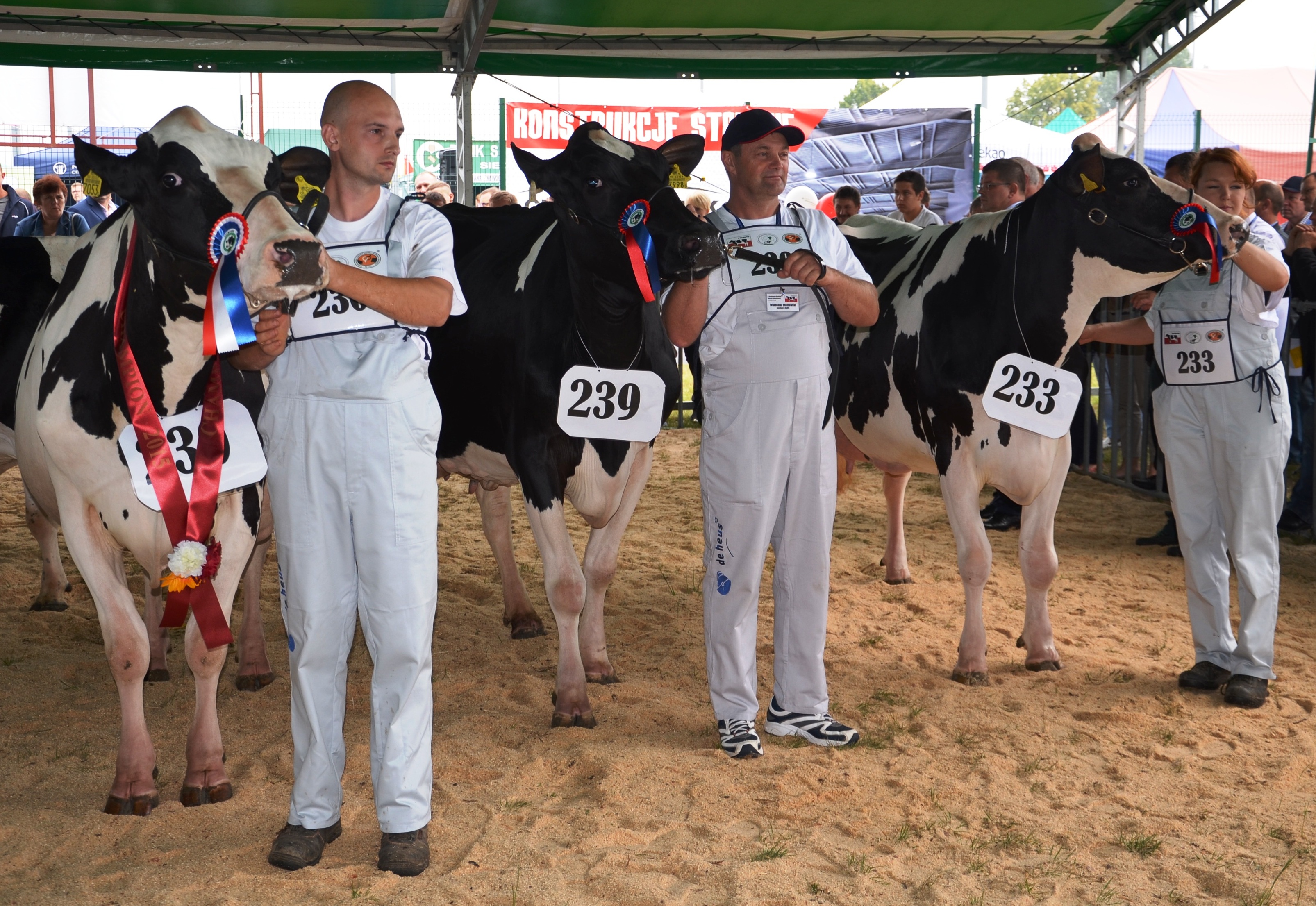 Ponadto, Komisja sędziowska w składzie Roman Januszewski i Marek Heda zdecydowała o przyznaniu SUPERCZEMIONÓW w kategorii jałowica niecielna oraz krowa II laktacji. Zdobywcom czempionów oraz wiceczempionów gratulujemy i życzymy dalszych sukcesów hodowlanych! Na wystawie nie zabrakło, również najmłodszych hodowców. W Konkursie Młodego Hodowcy wzięło udział 13 dzieci, które z radością prezentowały swoje cieliczki. Wśród nich, aż 6 sztuk jest córkami buhajów MCHiRZ. Za zaangażowanie, dzieci zostały hojnie obdarowane przez organizatorów i sponsorów wystawy. Podczas targów mieliśmy, również okazję zaprezentować ofertę MCHiRZ. Stoisko Mazowieckiego Centrum Hodowli i Rozrodu Zwierząt Sp. z o.o. cieszyło się szczególnym zainteresowanie. Odwiedziły Nas nieprzebrane tłumy gości. Frekwencja odwiedzających pobiła dotychczasowe rekordy. Chętnie odwiedzali nas producenci mleka, wołowiny, jak również hodowcy trzody chlewnej. Ogromnym zainteresowaniem cieszyły się czołowe buhaje z rankingu MCHiRZ. Hodowcy mogli uzyskać fachową poradę w zakresie hodowli i rozrodu zwierząt od Naszych doradców oraz wziąć udział w konkursie o nagrodę główną. Nie zabrakło atrakcji dla dzieci i dorosłych. Pokaz azotu, kuchnia molekularna, liczne loterie i konkursy, to zaledwie niektóre z niespodzianek czekających na Naszych gości. Niezmiennie, miłym akcentem niedzielnej wystawy, było wyróżnienie za wybitne osiągnięcia w inseminacji oraz długoletnią współpracą, inseminatorów współpracujących z Mazowieckim Centrum Hodowli i Rozrodu Zwierząt Sp. z o. o. Zakład w Żelkowie. Są nimi: Kazimierz Rogowski PUZ Iwowe