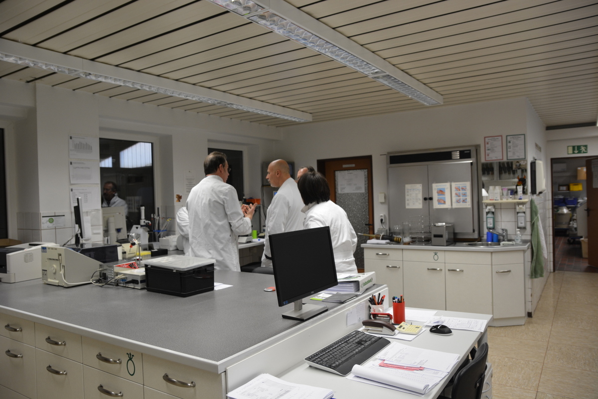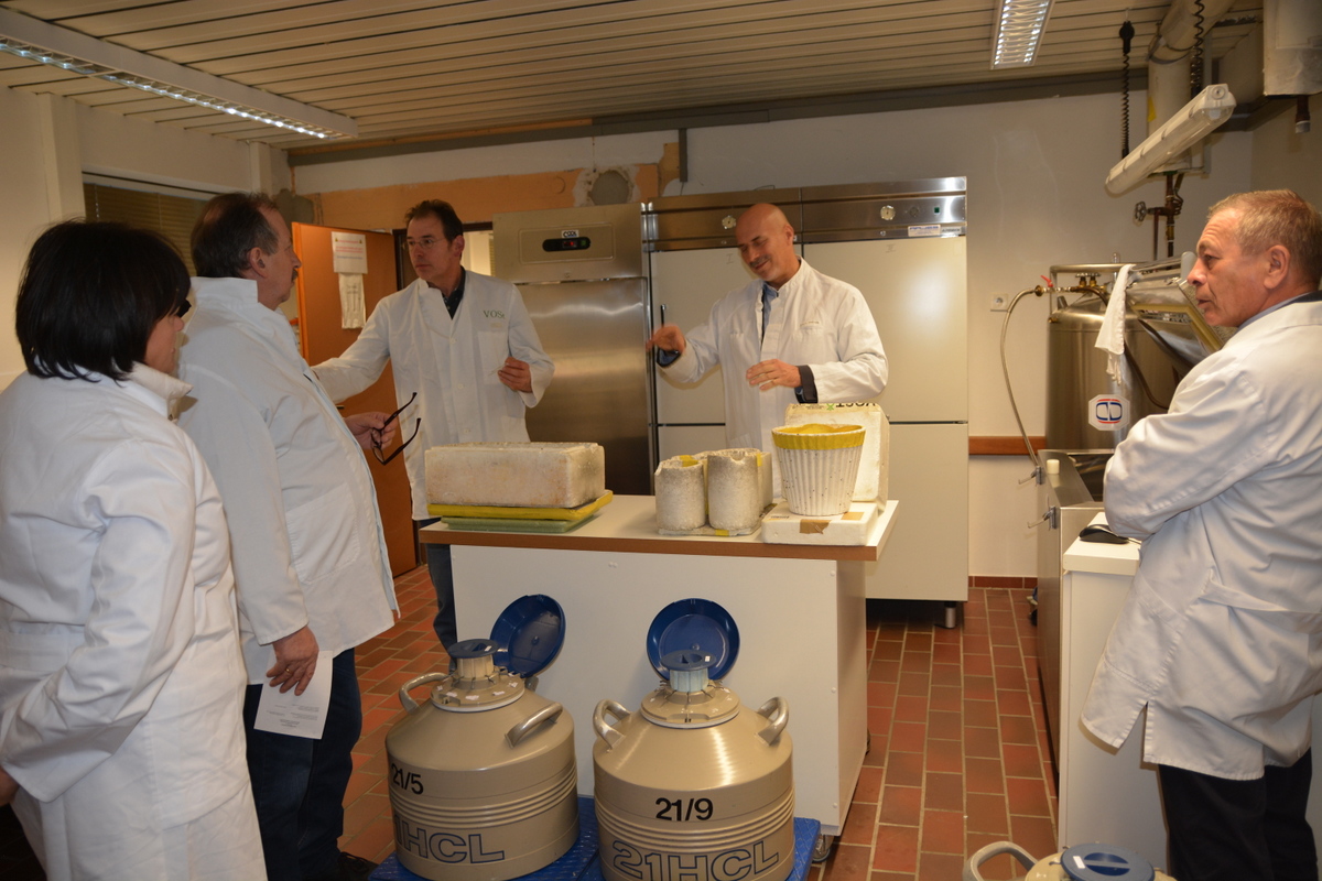 Firma GGI (Niemiecka Genetyka International GmbH) reprezentuje siedem wiodących niemieckich organizacji hodowli bydła w dziedzinie genetyki bydła Podczas wizyty, odbytej i spędzonej każdego dnia bardzo intensywnie mieliśmy możliwość zapoznania się naocznie pracą i funkcjonowaniem laboratorium seksowania nasienia buhajów w miejscowości Cloppenburg-Betten. To super nowoczesne laboratorium zostało wybudowane kosztem kilku milionów euro w roku 2012 i jest ono jedynym laboratorium seksowania nasienia w Niemczech. Produkcja w tym laboratorium odbywa się przy ścisłym przestrzeganiu wszelkich reżimów jakościowych i higienicznych non stop 24 godziny na dobę w cyklach 7 godzin produkcji/ godzina mycia i dezynfekcji urządzeń. Rocznie seksowaniu poddaje się w tym laboratorium 100 000 porcji nasienia. Mieliśmy także możliwość odwiedzenia i zapoznania się ze wszystkimi aspektami funkcjonowania stacji unasienniania VOST w miejscowości Georgsheil. Dość ciekawym aspektem jest fakt, że wszystkie obszary funkcjonowania stacji realizowane są w jednej lokalizacji (zarówno buhaje wyczekujące i produkcyjne, produkcja nasienia, laboratorium nasienia i Bank nasienia).