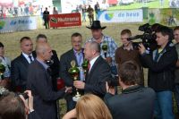 Oceny zwierząt na ringu dokonał sędzia główny Mieczysław Kopiczko, selekcjoner PFHBiPM, z pomocą Piotra Majki. Po prezentacji zwierząt oraz wnikliwej ocenie komisji, zostały wyłonione w poszczególnych grupach najpiękniejsze zwierzęta, którym nadano tytuły Championów i Vice-Championów. W grupie krowy III laktacji i dalsze tytuł Championa otrzymała krowa Lea 79 PL00514526074-6 z gospodarstwa Dariusza Nasiłowskiego ze Skwierczyna Dwór, która również została najpiękniejszą krową całej Wystawy i otrzymała najbardziej zaszczytny tytuł Super-Championa. Natomiast Vice- Championa krowy Ładka 45 PL00514643925-7 hodowcy Mirosława Świnarskiego z Czarnowęża oraz Kawka 10 PL00512999348-6 z gospodarstwa rolnego Edmunda Oleszczuka z Krup. W II grupie Championa przyznano krowie Marfa 10 PL00517425890-5, której właścicielem jest Krzysztof Ołtarzewski z miejscowości Dybów. Tytuł Vice-Championa przyznano krowom Anda 46 1 PL00518006264-0 z gospodarstwa rolnego Jacka Mieczkowskiego z miejscowości Patrykozy Kolonia, a także Santana PL00517600581-1 z gospodarstwa Anieli Świerżyńskiej w Nienałtach Szymanach. W prezentowanej grupie krów pierwiastek, zdaniem komisji na tytuł Championa zasłużyła krowa Grota PL00520005489-1 Tadeusza Stelęgowskiego z miejscowości Kudelczyn. Również w tej grupie ocenianych zwierząt, ze względu na liczebność krów, według regulaminu przyznano dwa Vice-Championy, które otrzymały krowy Malina 13 PL00520096495-4 należąca do Witolda Prządki z miejscowości Nowy Goniwilk i Brzoskwinia PL00520662999-4 Aliny Strus z Brzozowa Kolonii. Wśród ocenianych jałowic cielnych Championem nagrodzono jałowicę Twarda 5 PL00520327053-3, której właścicielem jest hodowca Jan Majkowski z Jarzył. W tej grupie ocenianych zwierząt tytuły Vice-Championa otrzymały jałowice Niemka 3 PL00516556866-2 należąca do Marcela Skolimowskiego z miejscowości Sosenki Jajki i Wołga 1 PL00522018344-1 z gospodarstwa rolnego Jacka Mieczkowskiego z miejscowości Patrykozy Kolonia. Wszystkie nagrodzone zwierzęta zostały udekorowane tradycyjnym flo, przepięknym wieńcem z kwiatów oraz oczywiście gromkimi brawami widowni. Hodowcom nagrodzonych zwierząt serdecznie gratulujemy i życzymy dalszych sukcesów w pracy zawodowej i życiu osobistym. Na wystawie prezentowane było również 2 sztuki bydła ras mięsnych oraz 6 sztuk bydła innych ras mlecznych. Swój dorobek w hodowli bydła mięsnego zaprezentował Witold Tyszkiewicz z miejscowości Stok Ruski, prezentujący rasę Limousin. Krowy rasy Polskiej Czerwonej prezentował hodowca Stanisław Antoszczuk z Drażniewa, rasę Jersey prezentował Krzysztof Mazurek z Suchożebr, rasę Simentalską prezentował Adam Pogorzelski z Dybowa, Rasę Mombeliarde Tomasz Błachnio z Leokadii oraz rasę Białogrzbieta hodowca Mirosław Czarnocki z Czarnot. Kolejnym punktem programu pierwszego dnia Wystawy był pokaz cieliczek. Dzieci hodowców, w wieku do 11 lat prezentowały swoje cielaczki na ringu. W tym pokazie sędziowie nie wyłaniają zwycięzcy, gdyż wszyscy młodzi hodowcy swoim zaangażowaniem i włożonym wkładem pracy w przygotowanie cieliczek, zasługują na wyróżnienie. Dzielnym, młodym hodowcom i ich rodzicom serdecznie gratulujemy. Uznanie publiczności zdobyły praktycznie wszystkie prezentowane cieliczki i ich bardzo młodzi prezenterzy. Na VII Regionalnej Wystawie Zwierząt Hodowlanych w Siedlcach mieliśmy przyjemność gościć Pana Marka Sawickiego - Ministra Rolnictwa i Rozwoju Wsi. Z udziałem Pana Ministra Sawickiego puchar dla zdobywcy Superczempiona wręczył V-ce Prezydent PFHBiPM Stefan Glonek. Puchary dla Czempionów i Wiceczempionów wręczyli: Artur Brzóska - V-ce Prezes ARR i Andrzej Różycki dyr. Oddz. Terenowego w Warszawie. Puchary dla II Wiceczempionów wręczyli: Tomasz Kołodziej Prezes ARiMR oraz Mariusz Kostka dyr. Oddz. Warszawa. Ponadto Pan Minister Sawicki wręczył nagrodę dla zdobywcy Mistrza krajowego Agroligii 2011 roku w kategorii "rolnicy"- Maria i Szczepan Będzikowscy z Zakrzewka (woj. mazowieckie) ufundowanej przez PFHBIPM. Z rąk Ministra odznaczenia Zasłużony dla rolnictwa także odebrali pracownicy MCHiRZ oraz rolnicy z powiatu siedleckiego. Wszyscy wystawcy zostali również uhonorowani nagrodami od swoich władz samorządowych. Drugi dzień wystawy rozpoczął się uroczystą prezentacją osiągnięć hodowlanych producentów trzody chlewnej. Tym razem wystawiono na ringu 15 sztuk trzody chlewnej pochodzącej z 6 hodowli. W Wystawie swoje zwierzęta zaprezentowali: Adam Zboina z Filipówki, jednocześnie Prezes Wojewódzkiego Związku Producentów Trzody Chlewnej, Jastrzębski Kazimierz z Cielemęca, Ługowski Stanisław i Ługowski Andrzej z miejscowości Zdany Goliszewski Jan z Kownacicy oraz Paweł Błoński z Zająca. Puchary, odznaczenia oraz liczne nagrody wręczone uczestnikom pokazu przez organizatorów wystawy i sponsorów z pewnością były wspaniałym uhonorowaniem dużego trudu i pracy poniesionej przez Hodowców prezentujący swoje zwierzęta na Wystawie. Uroczysty pokaz wyróżnionych zwierząt na ringu- to kolejny punkt programu na który goście przybyli licznie i gromkimi brawami uhonorowali swoich hodowców za ich wysiłek. Po raz kolejny na ringu zaprezentowały się dzieci z cieliczkami. Po prezentacji odbyło się wyróżnienie małych Wystawców. Dla wszystkich dzieci nagrody ufundowane przez różne firmy były jednakowe, ponieważ jak uznali organizatorzy, wysiłek włożony w opiekę nad cieliczkami zasługiwał na równe uznanie. Upominki dla dzieci wręczali główni Organizatorzy, Firmy Paszowe i inni Sponsorzy. Po obdarowaniu dzieci nastąpił czas honorowania hodowców. Puchary, dyplomy statuetki i nagrody rzeczowe wręczali hodowcom główni Organizatorzy, Prezesi Okręgowych Spółdzielni Mleczarskich i Zakładów Mleczarskich swoim dostawcom mleka, firmy paszowe swoim klientom w biznesie. Organizatorzy Wystawy