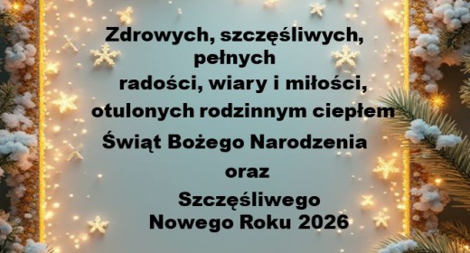 Z okazji Świąt Bożego Narodzenia składamy Wam wszystkim najserdeczniejsze życzenia: zdrowia, spokoju, rodzinnego ciepła oraz chwili wytchnienia od codziennych obowiązków.